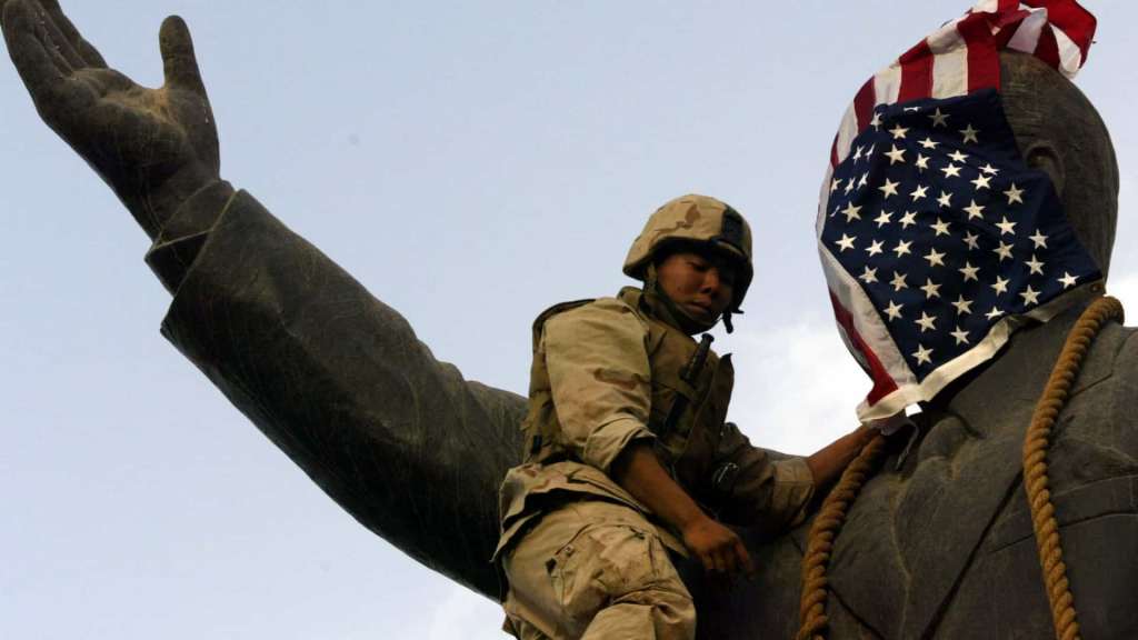 A invasão foi feita oficialmente em 20 de março de 2003 pela coalizão liderada pelos Estados Unidos, nesta ocasião, foram enviados 200 mil soldados ao Iraque, pois, a promessa Norte Americana era de uma invasão rápida, sendo parte de uma campanha para derrubar Saddam Hussein, que estava no comando do país desde 1979, com a pretensão de libertar o povo Iraquiano do regime vigente. Além disso, o pretexto seria de recuperar armas de destruição em massa que supostamente estariam em posse do líder iraquiano, pretexto esse que caiu por terra em fevereiro de 2003, no momento em que inspetores da ONU vasculharam o Iraque e concluíram que não havia nenhum indicio da presença ou produção de tais armas.