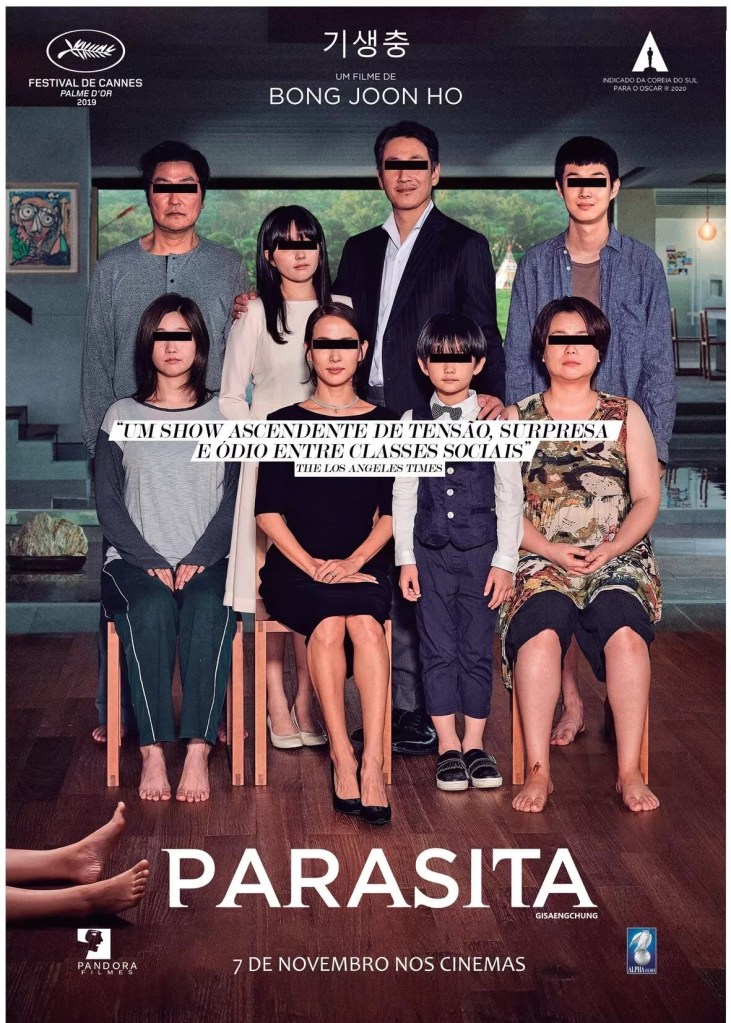 Parasita é a primeira produção de língua não-inglesa a ganhar a categoria de Melhor Filme no Oscar (maior premiação cinematográfica existente). A obra retrata as dificuldades que uma família desempregada, vivendo em um porão sujo e apertado, enfrenta para conseguir se sustentar. Porém, quando o filho mais novo é contratado como professor de inglês da primogênita de uma família rica, os Kim veem a chance de mudar de vida, infiltrando-se um a uma na casa de seus patrões, através de muitas mentiras e manipulações.