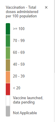 WHO CORONAVIRUS. Vaccination – Total doses administered per 100 population. Disponível em: <https://covid19.who.int/>. Acesso em: 10 de Dezembro de 2021.