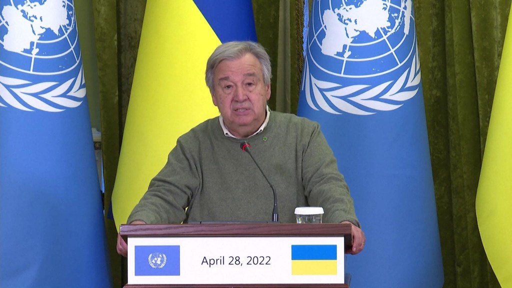 O secretário-geral das Nações Unidas, Antonio Guterres, realizou uma entrevista coletiva conjunta com o presidente ucraniano Volodymyr Zelensky. Falando após uma reunião em Kiev, Guterres criticou o conselho de segurança de sua própria organização por não impedir ou encerrar a guerra na Ucrânia.