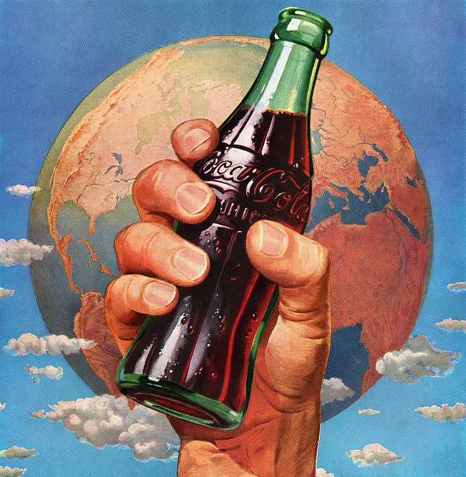 Criada em 1886 nos Estados Unidos, o ponto que catalisou a marca remete às políticas de atração dos Estados Unidos do “American Way of Life”, modelo cultural estadunidense que marca a transição do capitalismo fordista-keynesiano para o neoliberalismo, e baseado em um consumismo em massa. Dentre as formas encontradas de levar a “cultura americana” para o mundo, a TV e o cinema tiveram um importante papel na atratividade dessa ideologia e as bebidas da Coca-Cola se tornaram um meio para que os Estados Unidos se fizesse presente em outras partes do mundo (MALVENTANO, 2018).