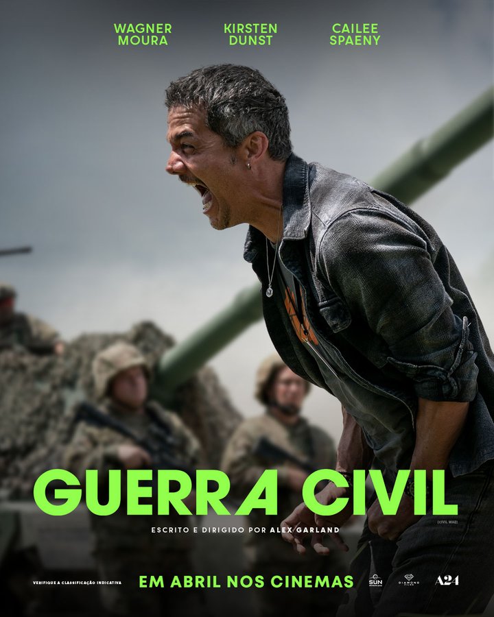 O filme “Guerra Civil”, produzido pela A24, descrita como a “nova dona de Hollywood” (Omelete, 2023) e que conta com a participação do renomado ator brasileiro Wagner Moura em seu elenco principal, aborda a atuação e sobrevivência de jornalistas de guerra em um EUA distópico, marcado pela polarização política. A obra mergulha na análise da percepção das pessoas, como: jornalistas, moradores locais, e organizações armadas, diante desse cenário caótico.