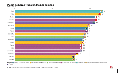 Logo, conforme o gráfico acima, o Brasil possui a 7ª maior carga horária entre as economias do G20, apresentando uma média consideravelmente superior à de economias altamente desenvolvidas como Canadá, Austrália e Alemanha. Sendo assim, a proposta de terminar a escala 6×1, representaria um avanço em direção a aproximar o Brasil do que é praticado nos países mais ricos do mundo.