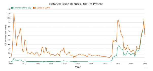 O gráfico evidencia o histórico dos preços do barril de petróleo ao longo dos anos de 1861 à 2009 e fica claro a influência exercida pela OPEP nas dinâmicas econômicas que norteiam a comercialização de petróleo no sistema internacional.