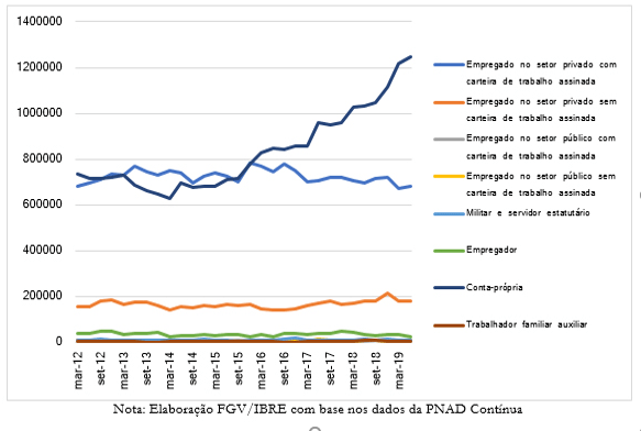 Fonte: RACHTER, Laísa. 2019. “A informalidade do mercado de trabalho: “Economia GIG” ou precarização do trabalho?” Disponível em: https://blogdoibre.fgv.br/posts/informalidade-do-mercado-de-trabalho-economia-gig-ou-precarizacao-do-trabalho-parte-i Acesso em: 26/01/2026